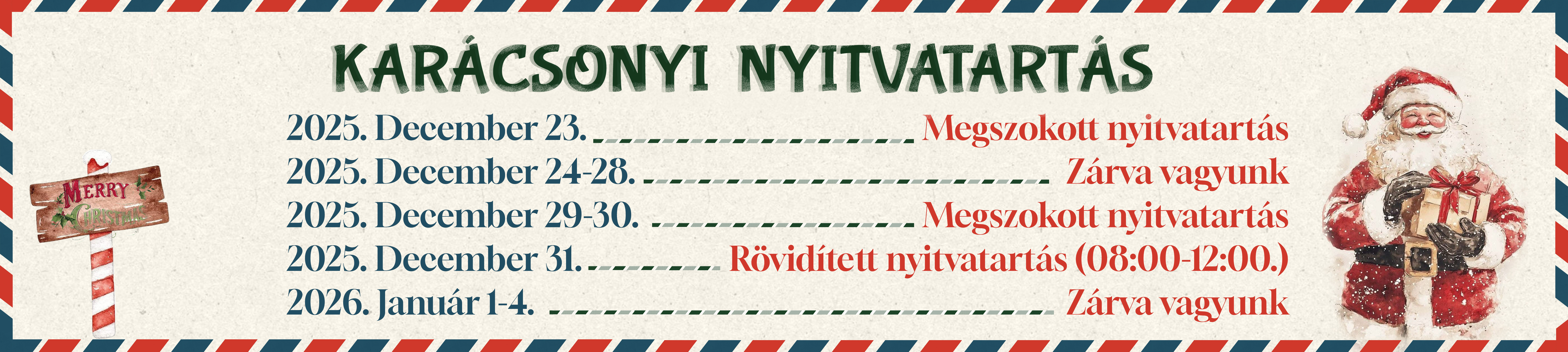 Hétfő-Kedd: 10:00-18:00 Szerda: 9:00-18:00 Csütörtök - Péntek: 8:00-18:00 Szombat: 9:00-13:00 Vasárnap: Zárva
