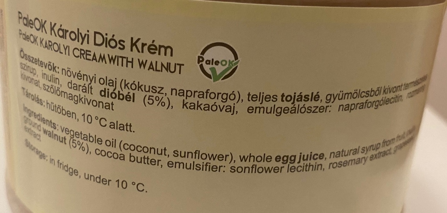 PALEO KÁROLYI tejmentes diós krém 1 kg, vajkrém helyettesítésére